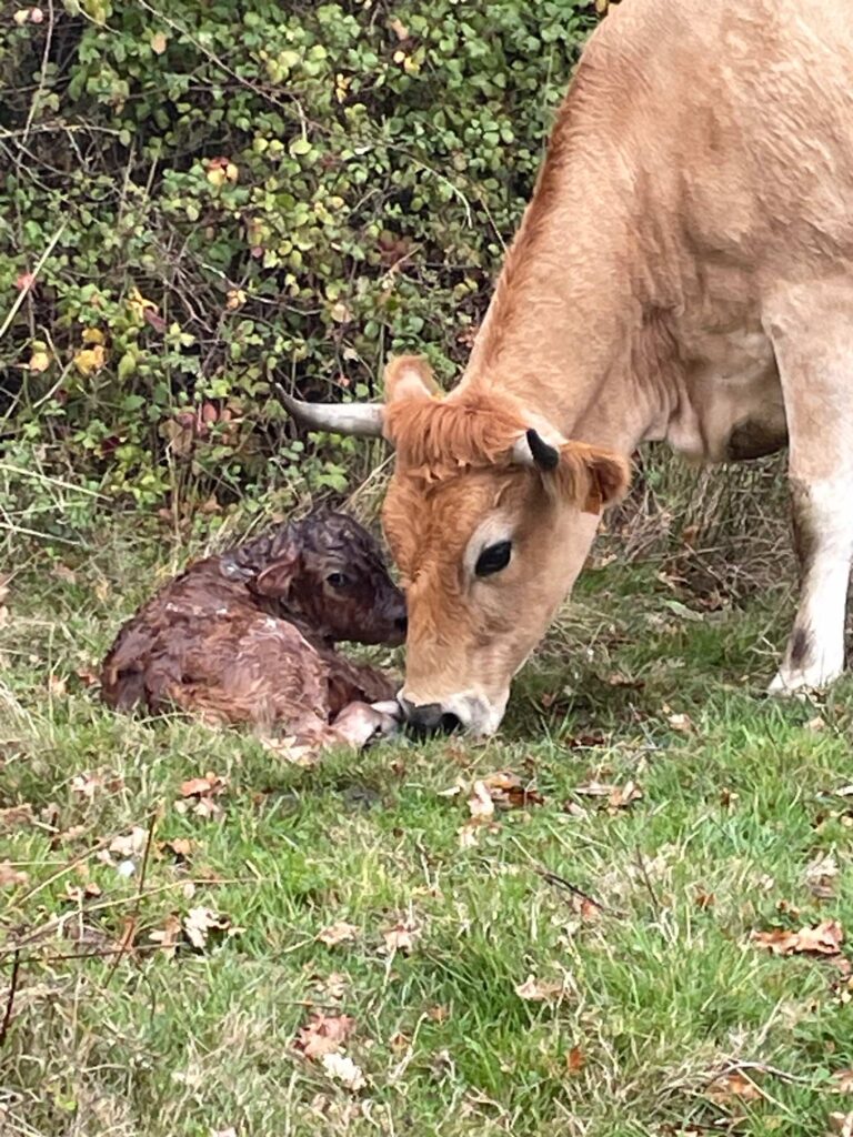 En plus de ça – et ça n’est pas la moindre des choses – elles vêlent très bien toutes seules. Elles n’ont pas été sur-sélectionnées pour la production de viande et leurs fessiers de taille raisonnable, tant pour les mères que pour les bébés, font que les naissances se passent globalement très bien.